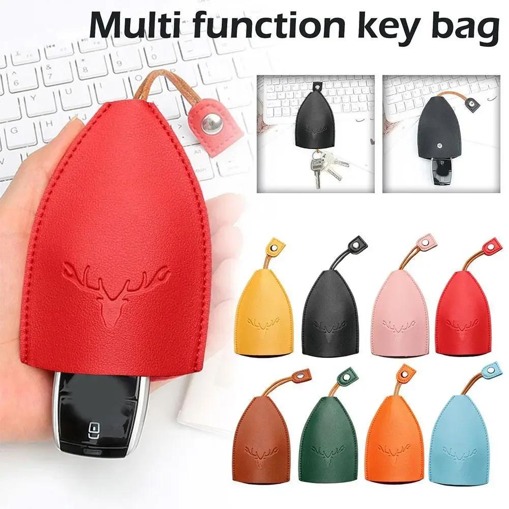 Рождественский ящик для ключей с лосем, милый выдвижной чехол для ключей, кошелек из искусственной кожи, чехол для ключей, карманный держатель для кожаного брелка
