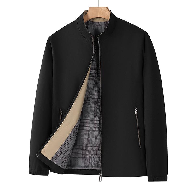 Однотонная мужская деловая тонкая повседневная куртка с воротником-стойкой для среднего возраста