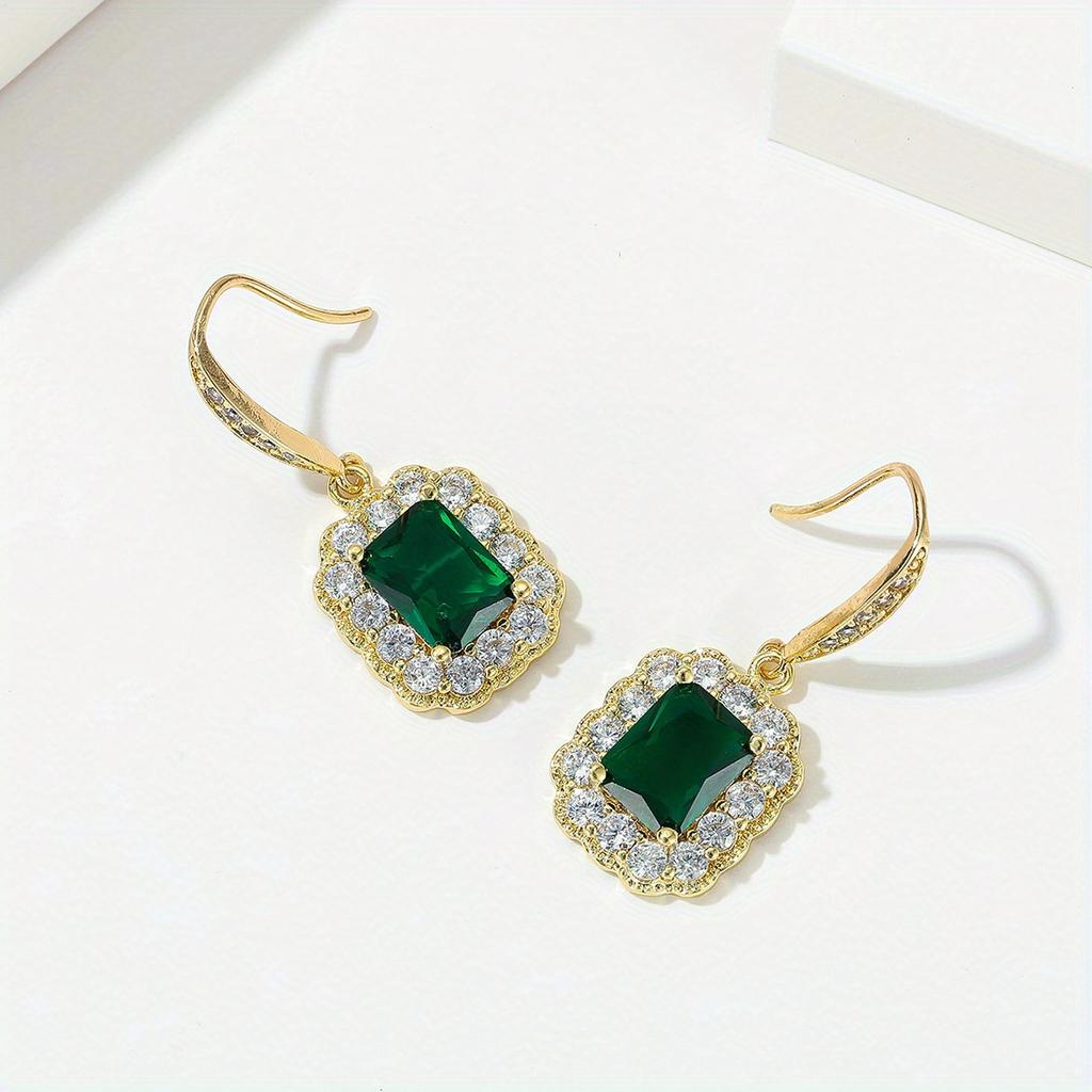 Серьги из зеленого квадратного циркона, инкрустированные стразами, роскошные ювелирные изделия, серьги-подвески из сплава, идеальный женский аксессуар для женщин, повседневный и праздничный декор