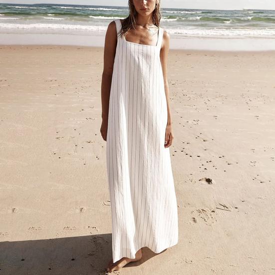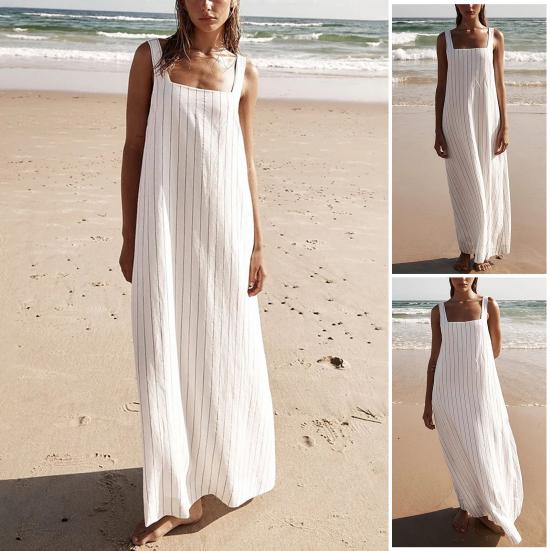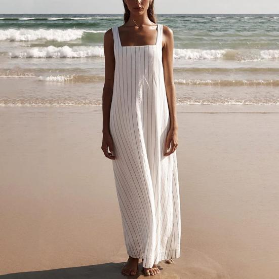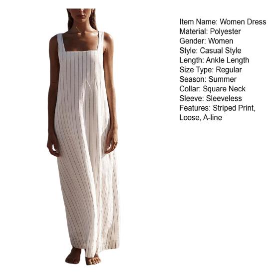 Подчеркните свой стиль с помощью этого модного и повседневного женского платья.. Это платье без рукавов с квадратным вырезом, свободной посадкой и элегантным полосатым принтом, придающим вашему гардеробу нотку простоты..
