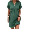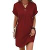 Летнее женское платье с V-образным вырезом и пуговицами с короткими рукавами Свободный однотонный пуловер Повседневная повседневная одежда Мини-платье для свиданий