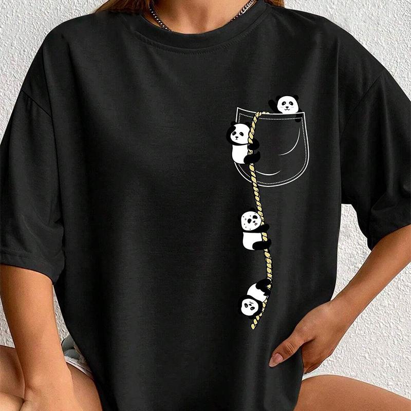 Модная женская креативная футболка с принтом панды и рисунком животных, забавная повседневная футболка с круглым вырезом и короткими рукавами, летняя женская футболка