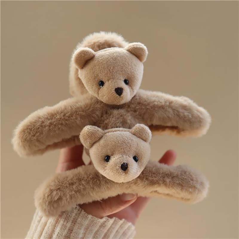 Плюшевая заколка для волос с милым медведем для женщин, двусторонняя голова медведя, большой зажим с когтями, корейские заколки в виде краба, женские заколки для волос, аксессуары для волос, модная заколка с мультяшным рисунком