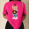 Модная женская футболка с милым мультяшным плюшевым мишкой, забавная повседневная футболка с круглым вырезом и короткими рукавами, летняя женская футболка