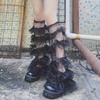 Женские многослойные сетчатые гетры с оборками, кавайные высокие носки, эстетичные чулки Y2K Chic, манжеты для ног, уличная одежда
