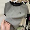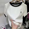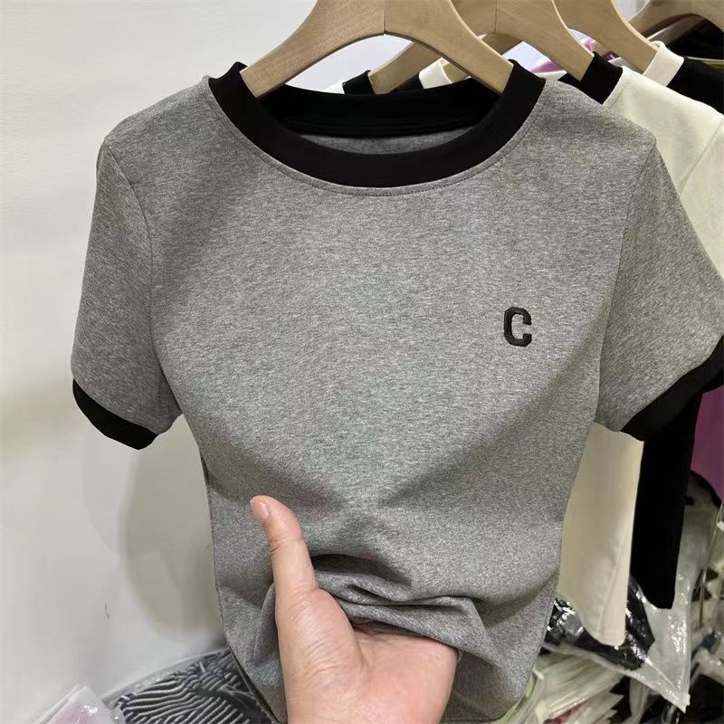 Женская контрастная вышитая буква C футболка женская темпераментная универсальная футболка с короткими рукавами летняя новая облегающая футболка