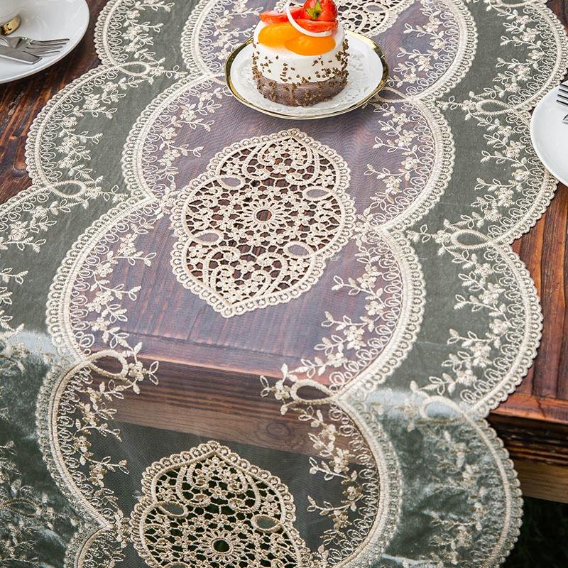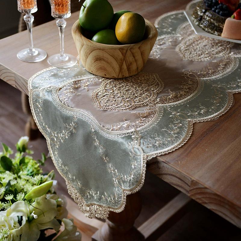 Новый чайный столик ТВ-шкаф Настольный флаг Классический зеленый европейский стиль Скатерть Кружевной настольный флаг Белая полоса света Роскошный ТВ-шкаф Настольный флаг