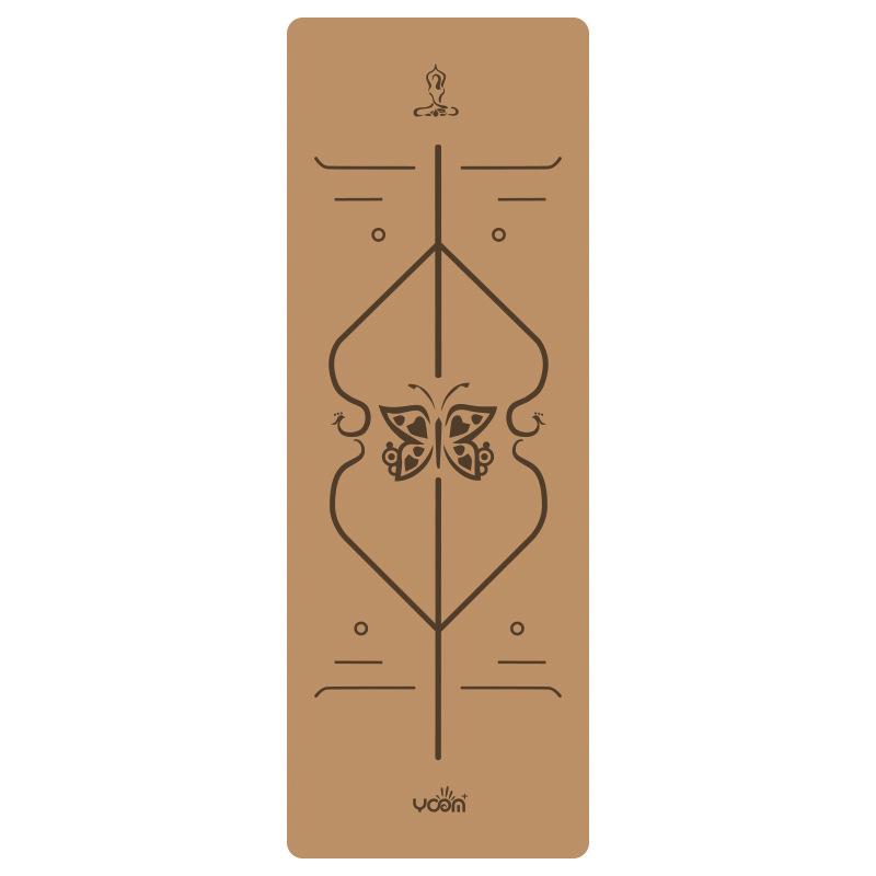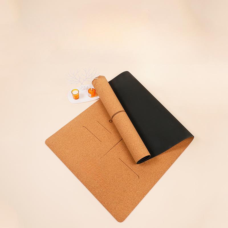 Коричневый пробковый коврик для йоги. Расширенный утолщенный натуральный каучук. Амортизирующий и бесшумный коврик для гимнастики. Спорт в помещении. Фитнес. Противоскользящий напольный коврик с принтом.