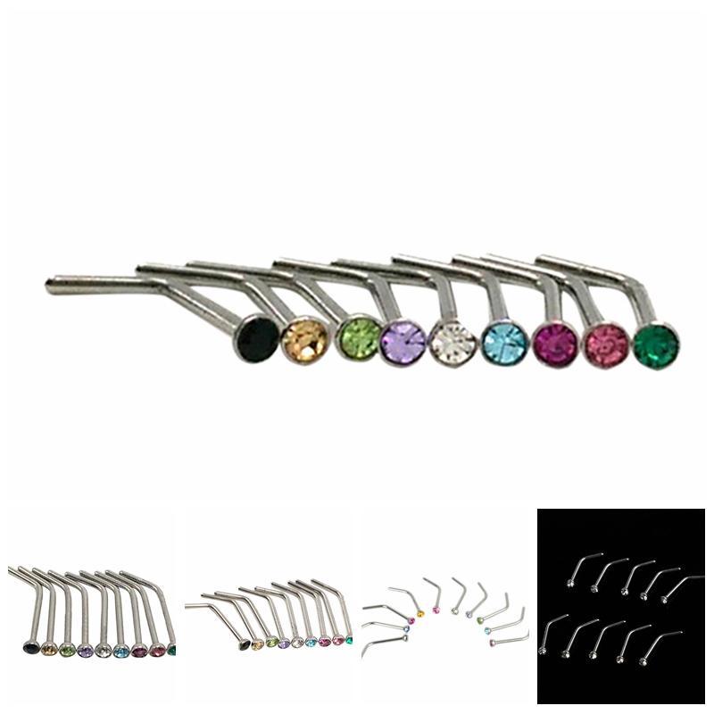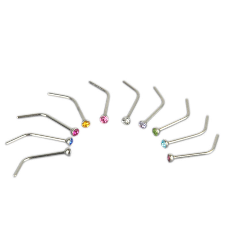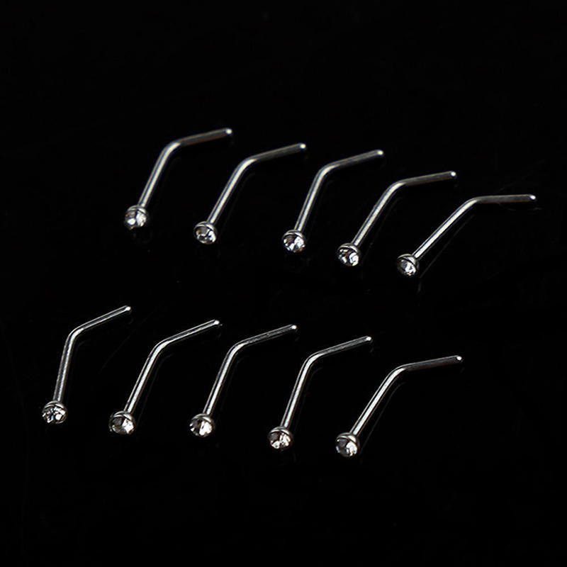10 шт горный хрусталь из нержавеющей стали винт обруч для носа кольцо-гвоздик ювелирные изделия для пирсинга