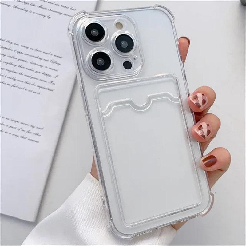Прозрачный чехол-держатель для сумки с отделением для карт для iPhone 15 14 Plus 13 11 12 Pro Max Mini, прозрачный противоударный силиконовый чехол-бампер для кошелька