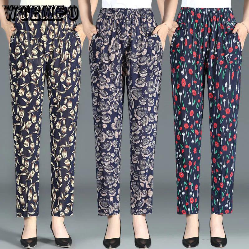 WTEMPO большие размеры, свободные повседневные брюки с высокой эластичной резинкой на талии и карманами, женские тонкие широкие брюки из ледяного шелка с принтом — купить товар онлайн с бесплатной доставкой по всему миру!