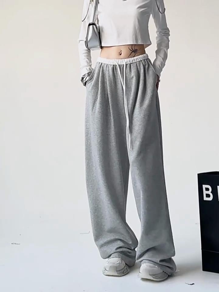 Модные спортивные штаны с широкими штанинами, женские спортивные штаны, повседневная спортивная одежда, серые брюки большого размера, женская корейская уличная одежда для спортзала