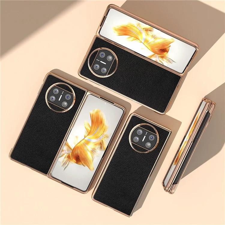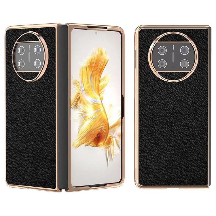 Для Huawei Mate X3 5G гальванический чехол для телефона из натуральной коровьей кожи ПК с текстурой личи
