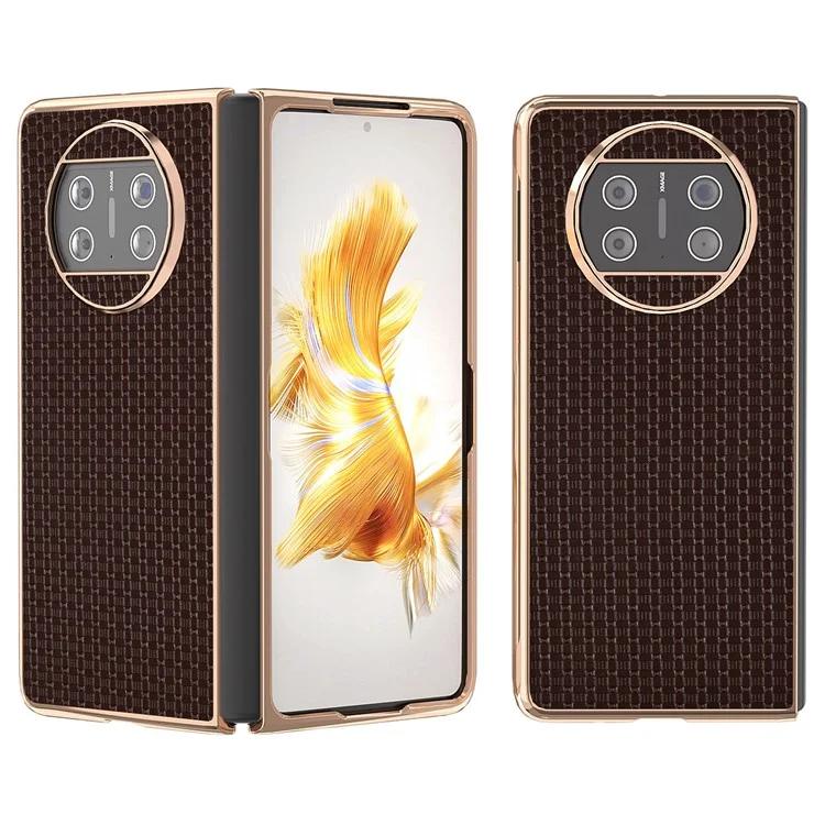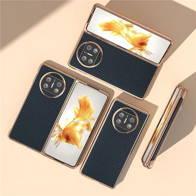 Для Huawei Mate X3 5G гальванизированная задняя крышка из натуральной коровьей кожи PC роскошный текстурный чехол для телефона