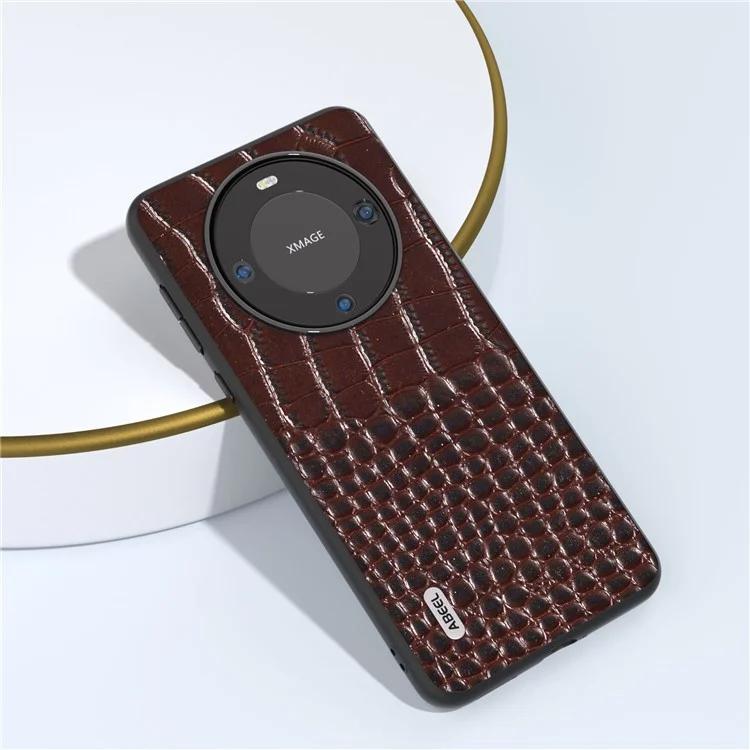 Для Huawei Mate 60 Чехол для телефона с текстурой крокодила из натуральной коровьей кожи с покрытием ПК ТПУ Гибридный чехол