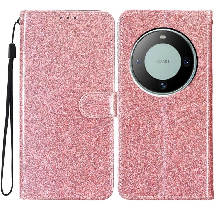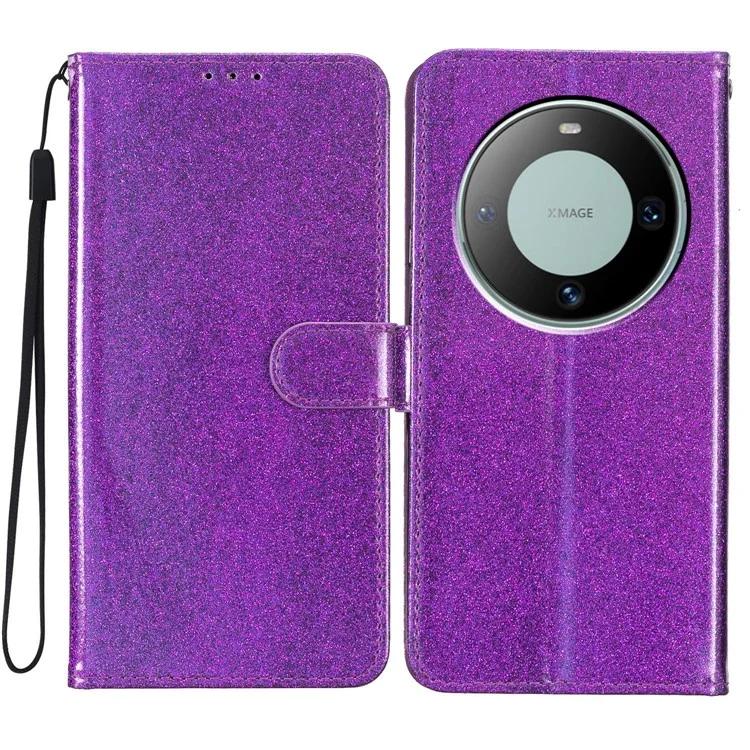 Для Huawei Mate 60 Pro Блестящий чехол для телефона из искусственной кожи, противоскользящий чехол-кошелек-подставка
