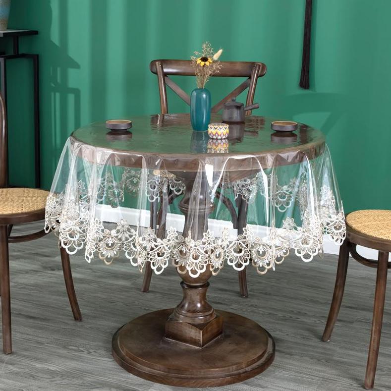 Скатерть из ПВХ с вышивкой и кружевным краем, водонепроницаемая и ниспадающая мягкая скатерть, бытовая скатерть для круглого стола, американский обеденный стол, скатерть для чайного стола