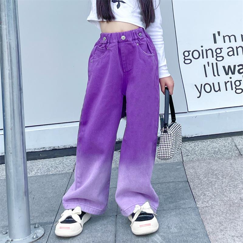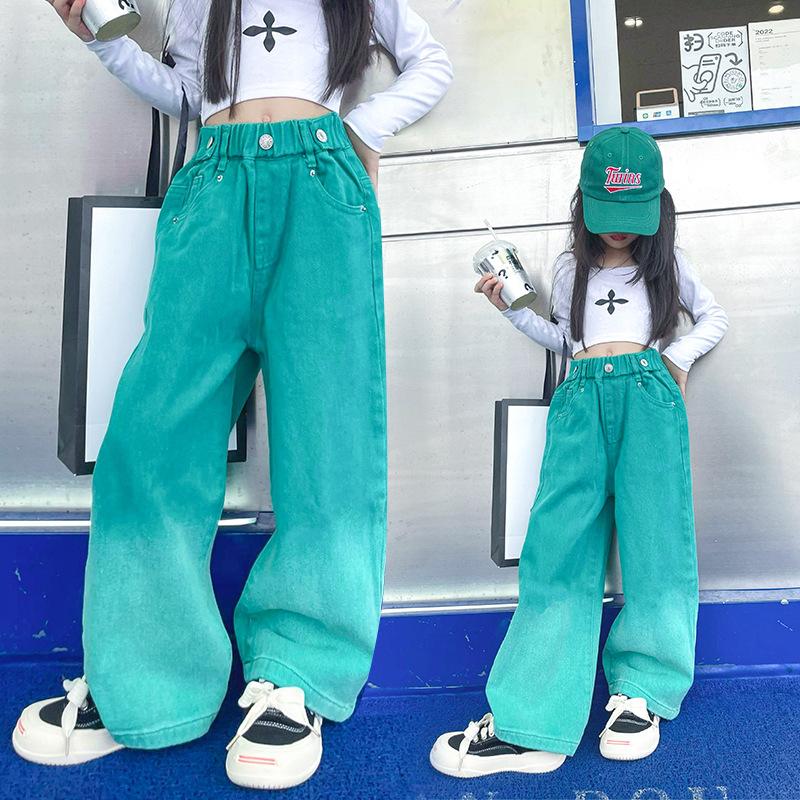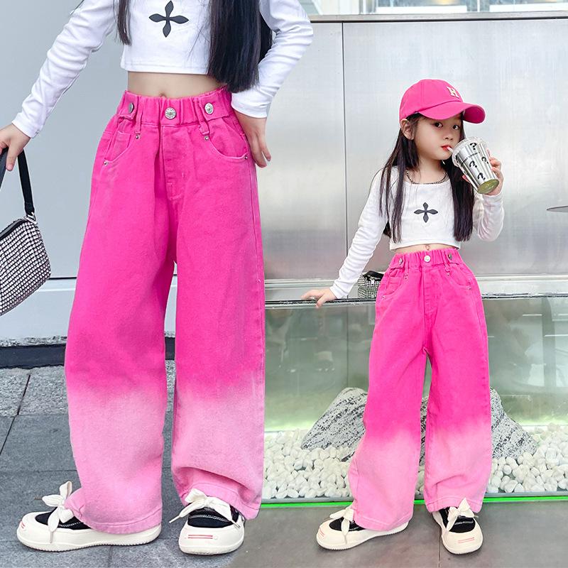 Модные широкие брюки ярких цветов для девочек, детская одежда, весенне-осенняя хлопковая уличная одежда для подростков, брюки