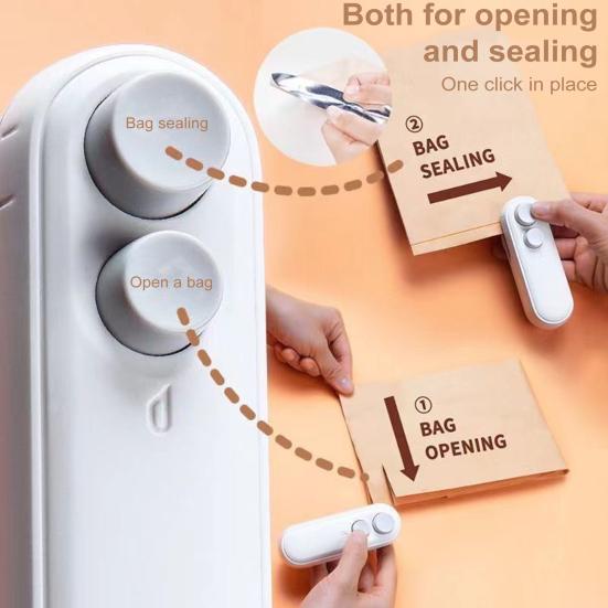 Герметизация и резка 2-в-1: Упростите кухонные задачи с помощью двойной функции Mini Bag Sealer: разрезания и запечатывания пластиковых пакетов и пакетов для хранения продуктов.. Откажитесь от громоздких зажимов и выберите компактное и эффективное решение.