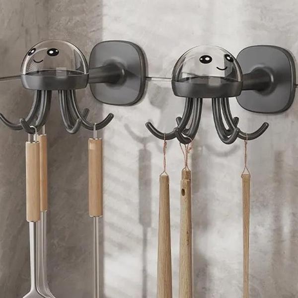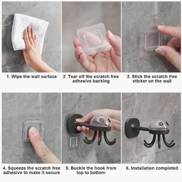 Прочный многофункциональный вращающийся крючок с шестью когтями, кухонная полка для хранения, бесследный крючок на 360 градусов, бытовой клейкий крючок без сверления