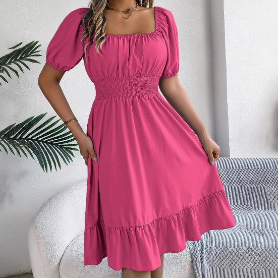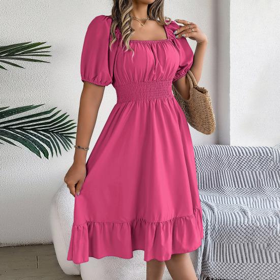 Подчеркните свой стиль с помощью этого женского платья из полиэстера и спандекса, обеспечивающего высокую эластичность, мягкость и комфорт.. Однотонный дизайн излучает элегантность и стиль, а квадратный вырез и рукава-фонарики со складками создают эффект стройности..