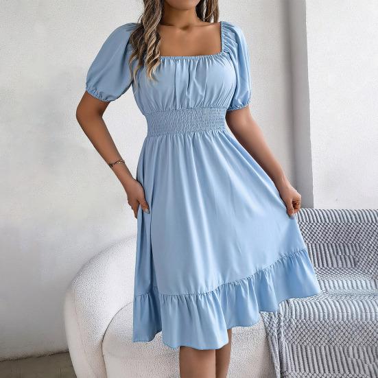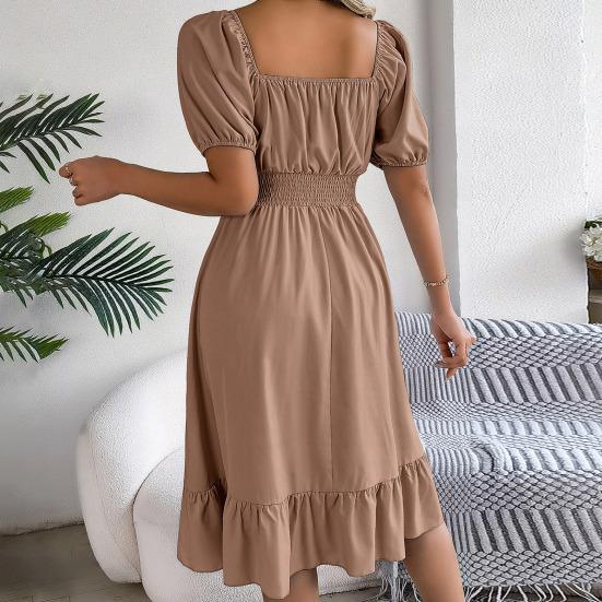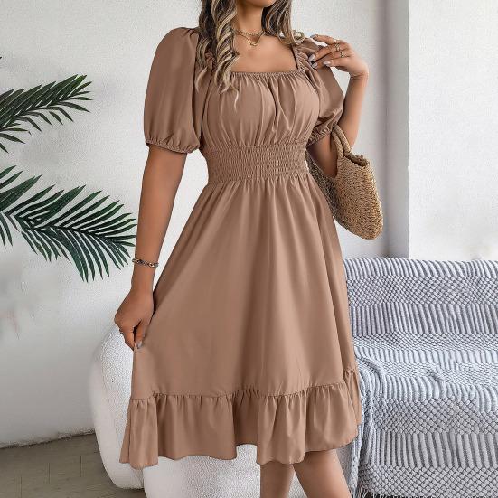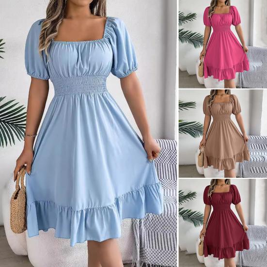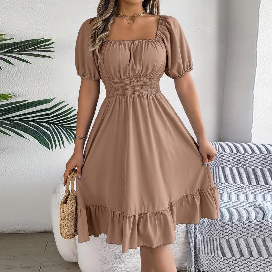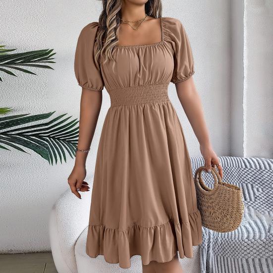 дизайн: Улучшите свой гардероб этим платьем с квадратным вырезом, шикарными рукавами-буфами и деталями со складками, которые не только добавляют нотку изысканности, но и создают привлекательный силуэт, что делает его универсальным выбором для различных случаев.