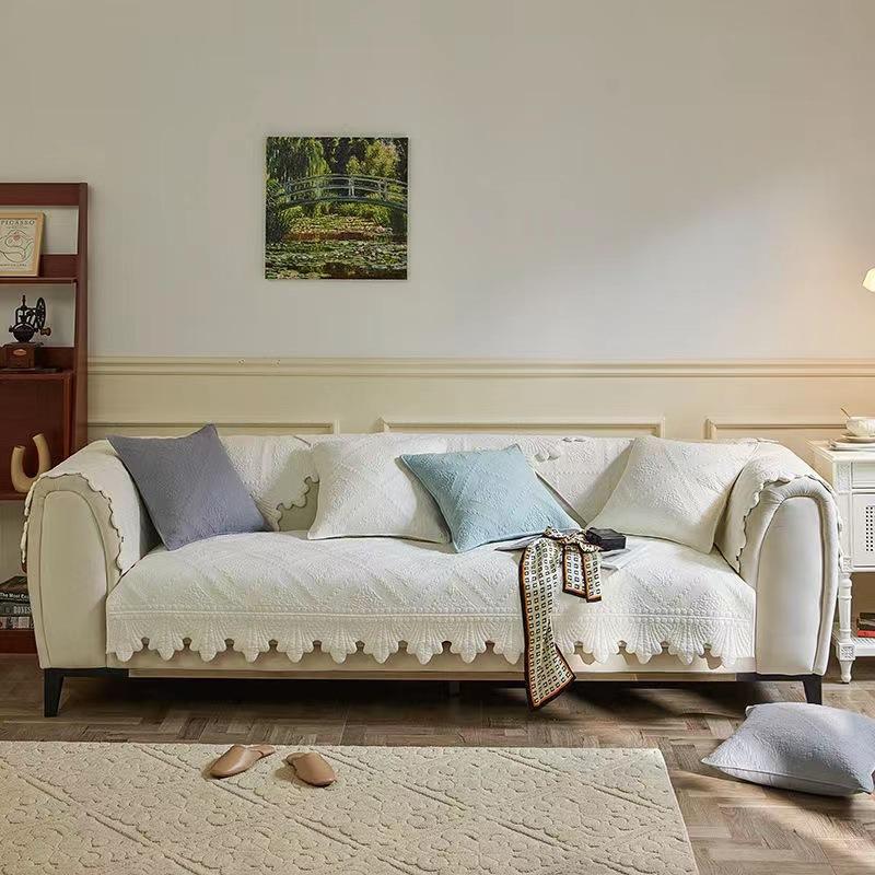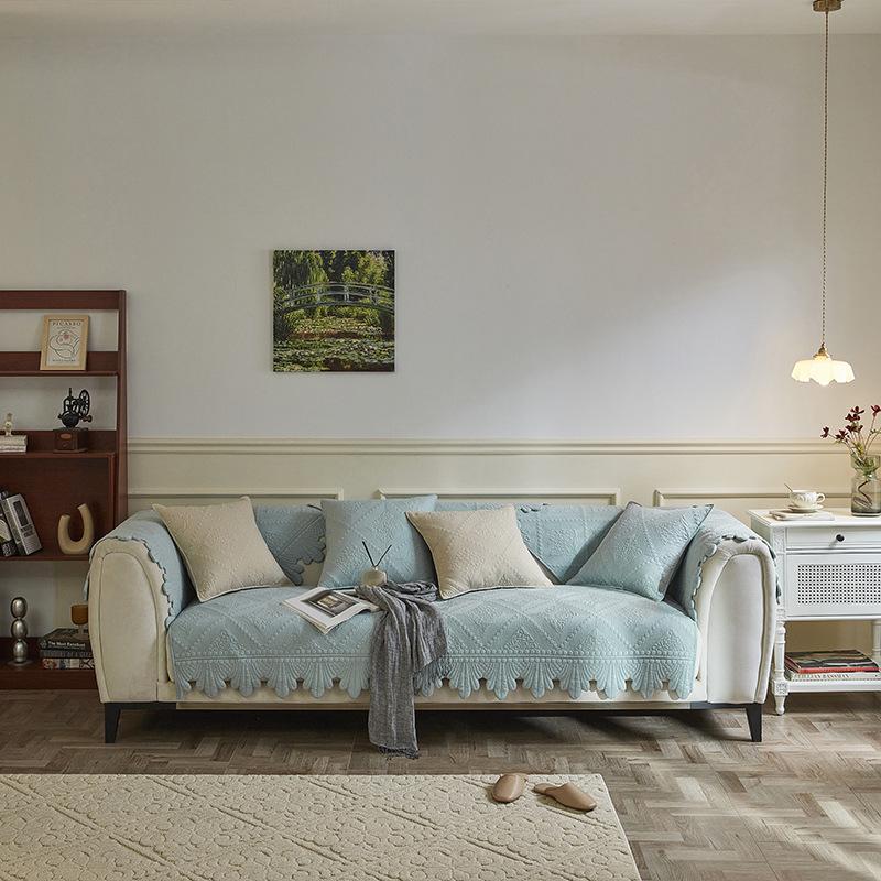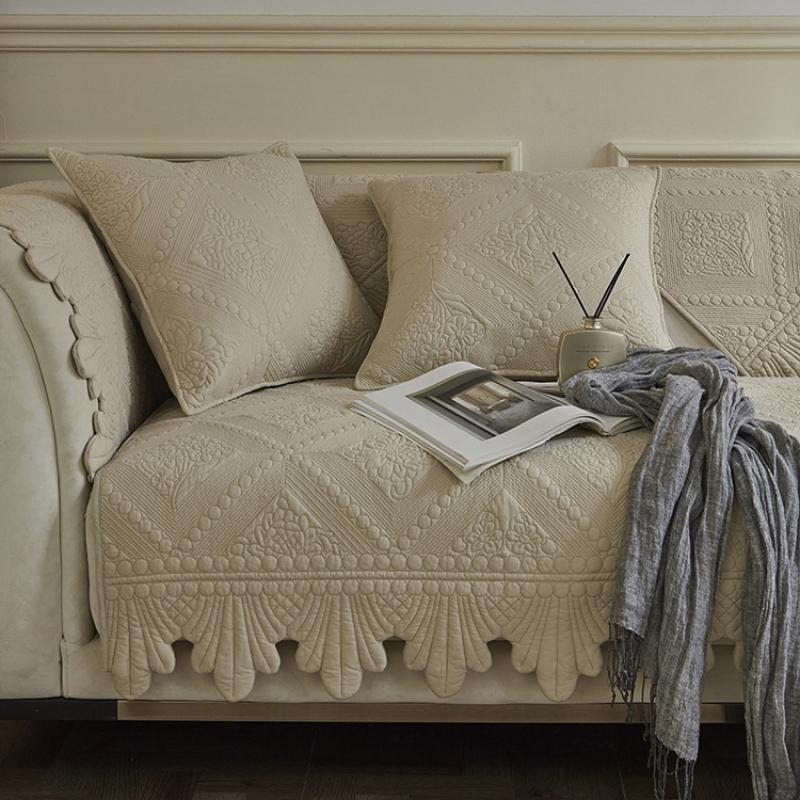 Ретро роскошная однотонная хлопковая подушка для дивана с вышивкой, четыре сезона, универсальные высококачественные противоскользящие кожаные салфетки для дивана, красивый домашний чехол для дивана