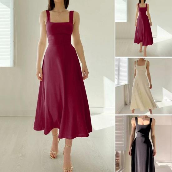 Это элегантное женское платье имеет простой, но стильный однотонный дизайн, излучающий изысканность и очарование.. Квадратный вырез и заниженная талия создают привлекательный силуэт А-силуэта, а деталь с открытой спиной добавляет нотку элегантности..