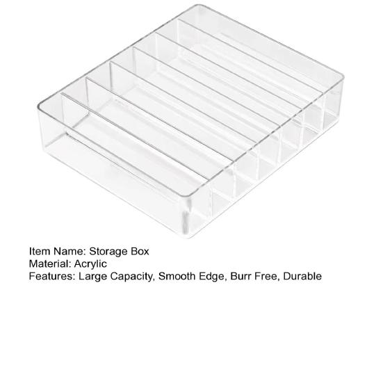 Этот компактный акриловый ящик для хранения, разделенный на 7 частей, оптимизирует пространство, позволяет аккуратно разложить косметику и максимально увеличить вместимость.
