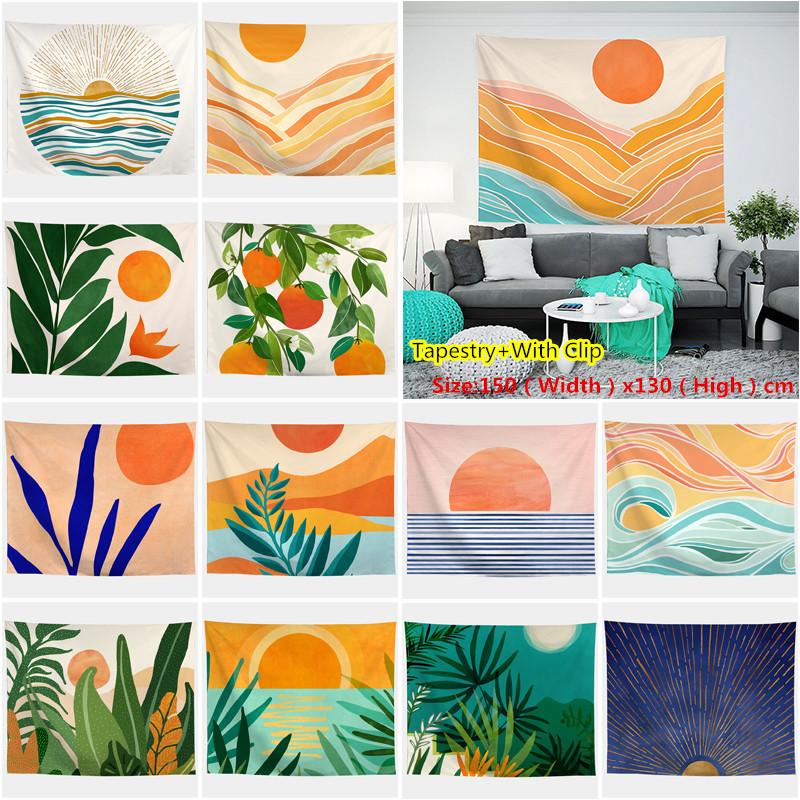 Акварель Море Закат Тропический Лес Печать Гобелен Растения Абстрактный Пейзаж Гостиная Спальня Домашний Декор