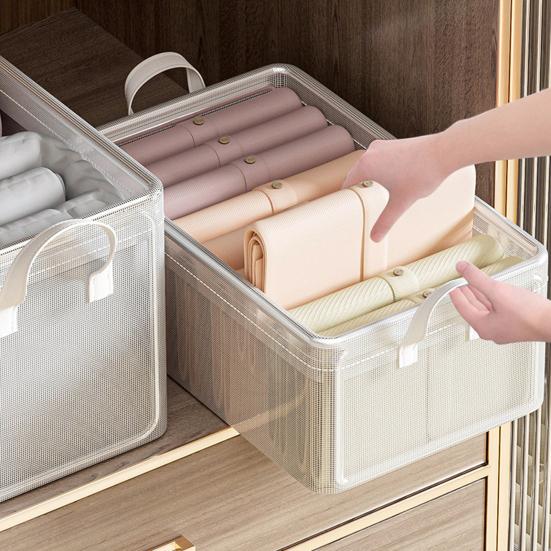 Это решение для хранения, оснащенное эргономичными ручками, обеспечивает плавное вытягивание и переноску предметов.. Складная конструкция позволяет экономить место при хранении, когда он не используется, что делает его идеальным для различных жилых помещений.