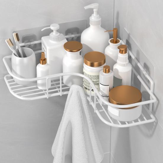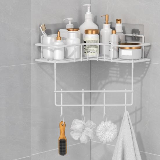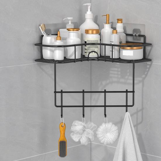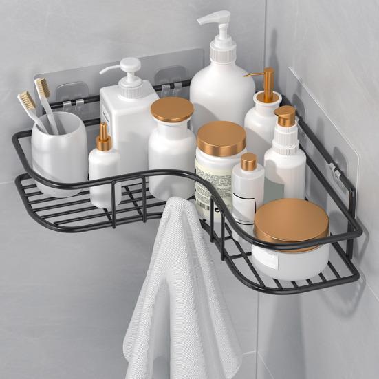 Прочная конструкция, усиленная высокотемпературной окраской, обеспечивает долговечность даже во влажной среде.. Его полая структура способствует вентиляции и легкой очистке.. L-образная планировка оптимизирует использование углового пространства, надежно вмещая различные предметы, такие как шампунь, кондиционер и средства для мытья тела.
