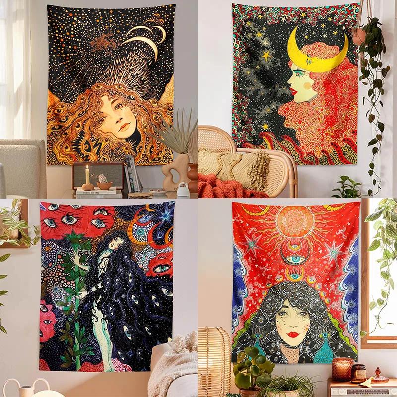 Психоделический гобелен для девочек, настенное растение, небесный цветок, глаз, ковер, звезда, общежитие