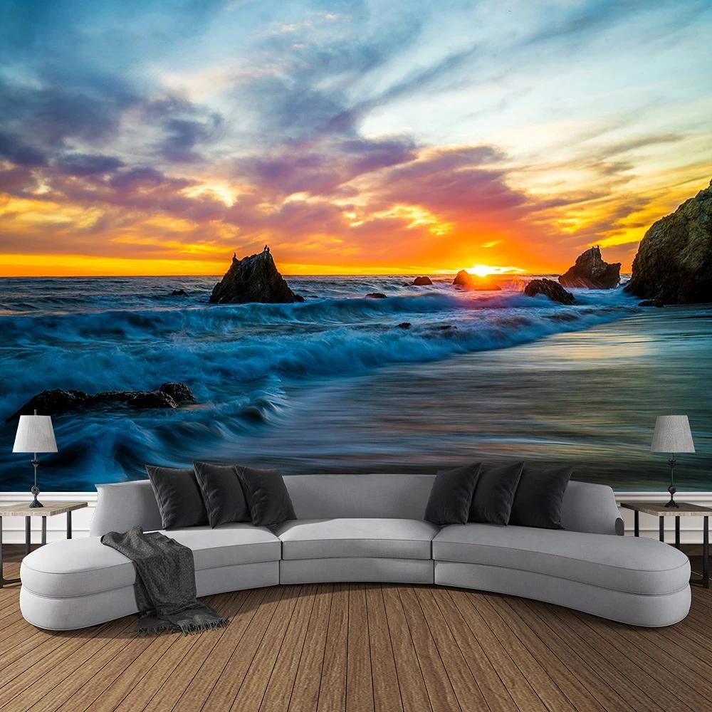 Пейзаж, пляж, закат, гобелен, настенный, большой, красивый, для спальни, для спальни