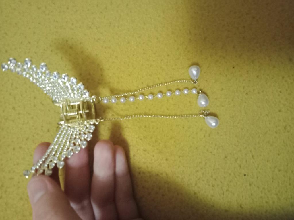 Заколка отличного качества с красивым дизайном. Сделана аккуратно, стразы все на месте. Держит волосы хорошо. Длина 9см.Подойдёт как девушкам, так и женщинам. Товар хорошо упакован. Доставка 1,5 месяца, но это вина нашей таможни и почты. Спасибо всем за качественный товар. Я очень рада.