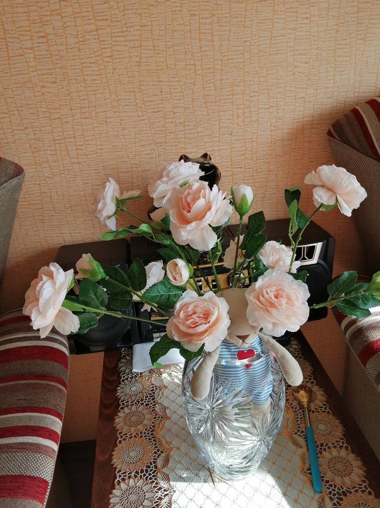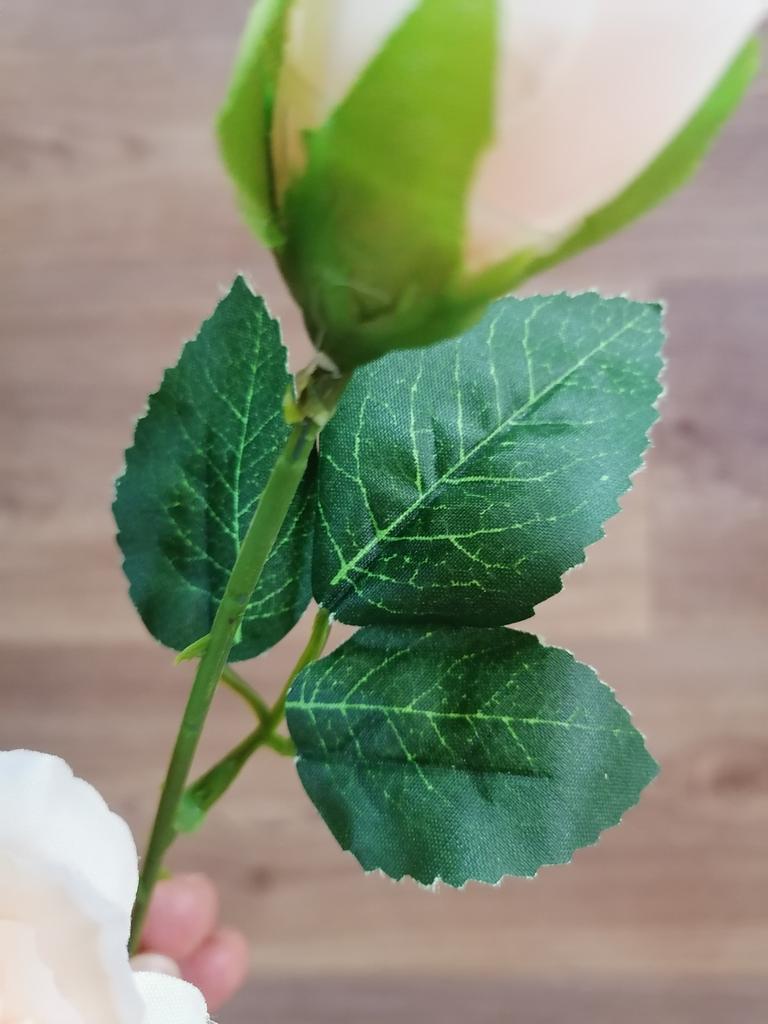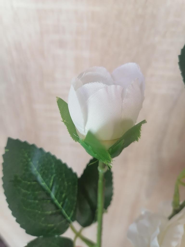 ИСКУССТВЕННЫЕ РОЗЫ 🌹. 💥 Я заказывала три штуки разных цветов. Здесь обзор на белые. Сами бутоны завернуты в пакет, стебель согнут дугой. 💥 Пластмассовый стебель с проволокой внутри, сгибается, но тяжеловато. Его длина, примерно, 61-62 см. 💥 На цвете три бутона: один маленький, два больших и три лепестка. Сделаны, в целом, аккуратно. Не буду придираться к мелочам. В реальности цветы выглядят намного меньше и скромнее, чем на фото продавца. Трех цветочков для более или менее приличного букетика явно не достаточно. Цена на них сейчас, на мой взгляд, завышена. А так цветочки красивые, можно брать. Буду ждать акцию. Желаю всем только удачных покупок🛍️! 💋💋💋