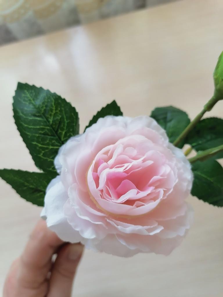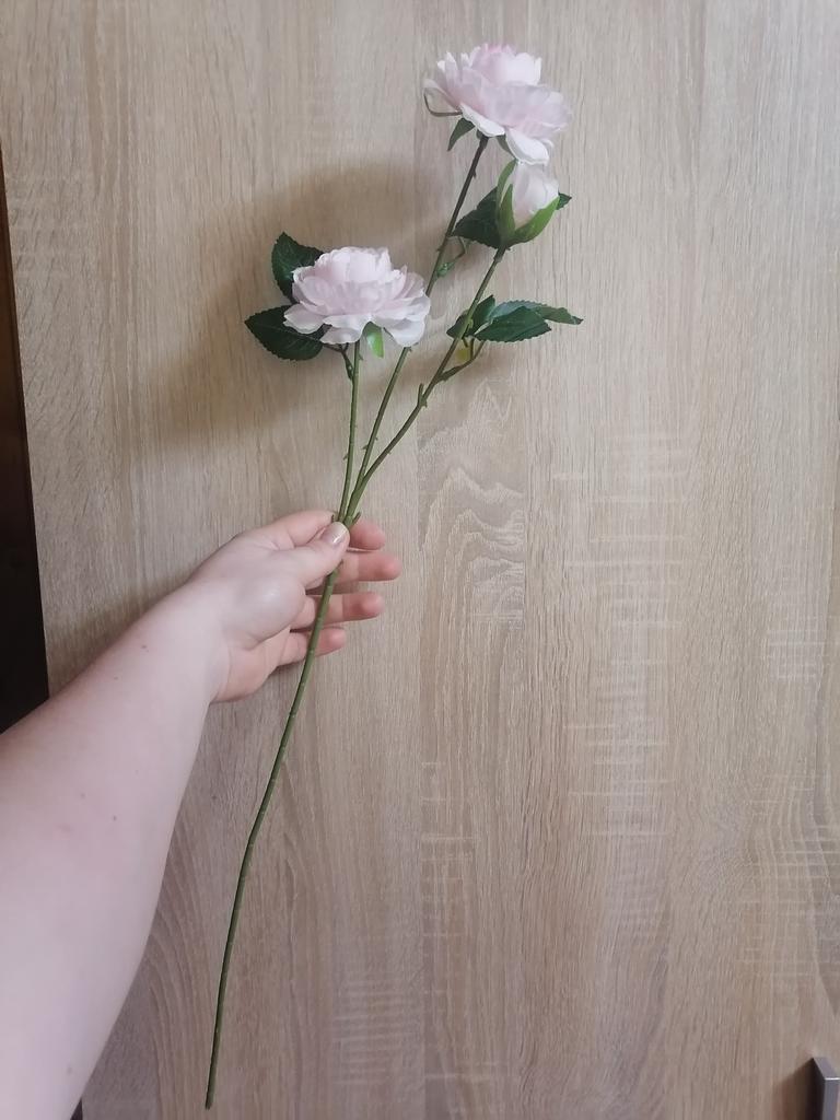 ИСКУССТВЕННЫЕ РОЗЫ 🌹. 💥 Я заказывала три штуки разных цветов. Здесь обзор на розовые. Сами бутоны завернуты в пакет, стебель согнут дугой. 💥 Пластмассовый стебель с проволокой внутри, сгибается, но тяжеловато. Его длина, примерно, 61-62 см. 💥 На цвете три бутона: один маленький, два больших и три лепестка. Сделаны, в целом, аккуратно. Не буду придираться к мелочам. В реальности цветы выглядят намного меньше и скромнее, чем на фото продавца. Трех цветочков для более или менее приличного букетика явно не достаточно. Цена на них сейчас, на мой взгляд, завышена. А так цветочки красивые, можно брать. Буду ждать акцию. Желаю всем только удачных покупок🛍️! 💋💋💋