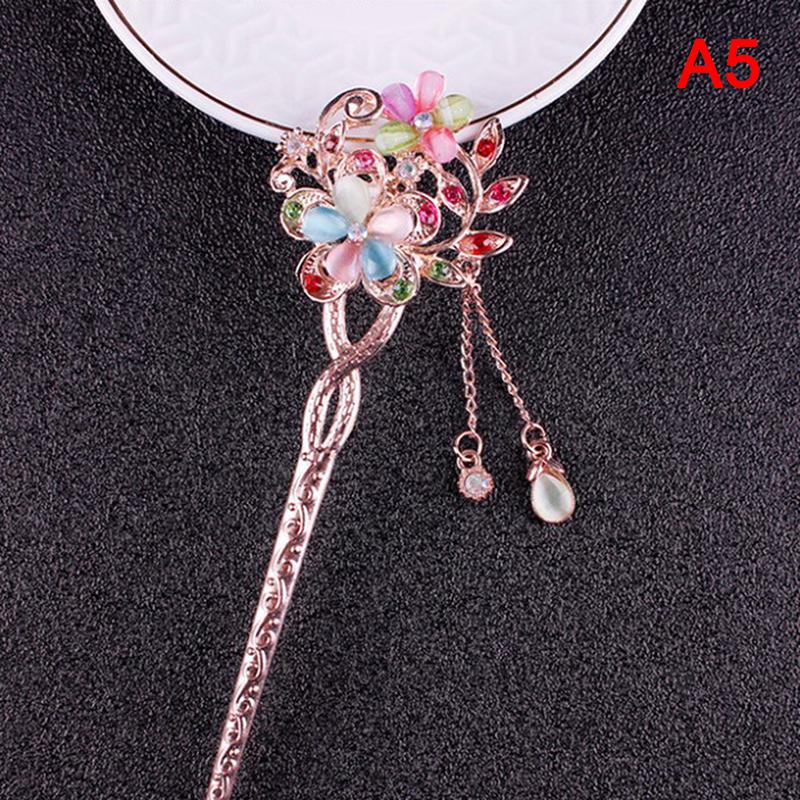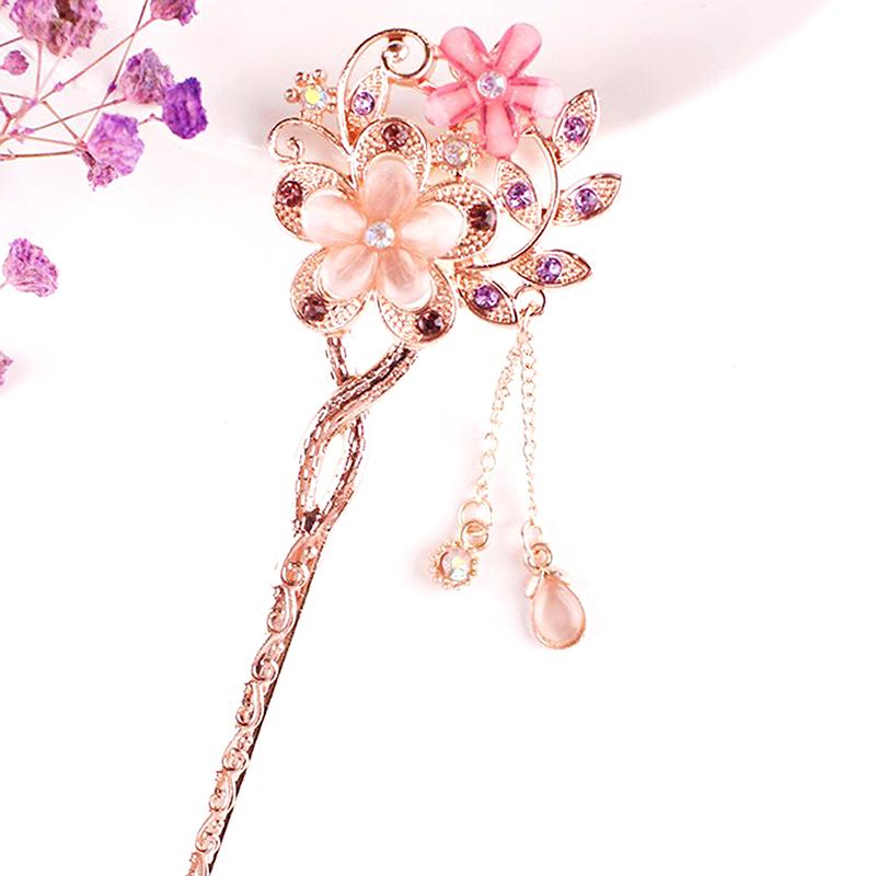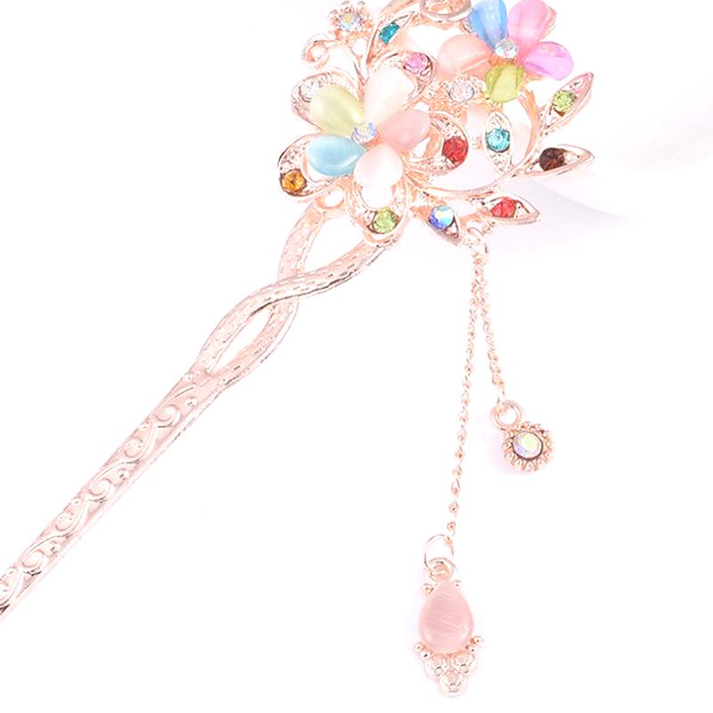 Заколка для волос с камнем кошачий глаз, двойная заколка для волос с цветком