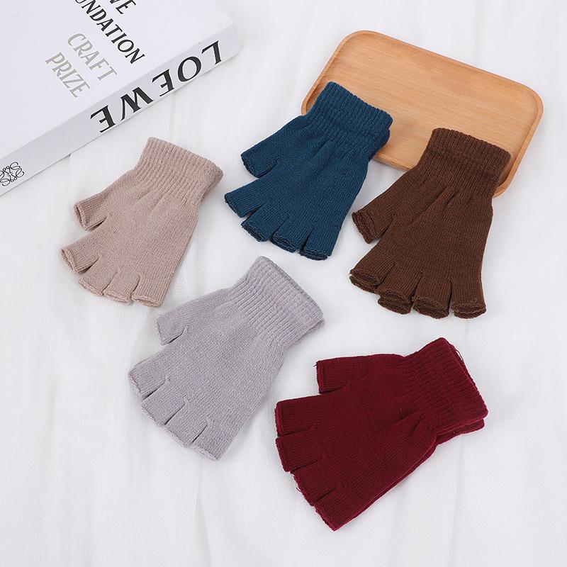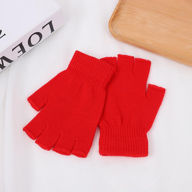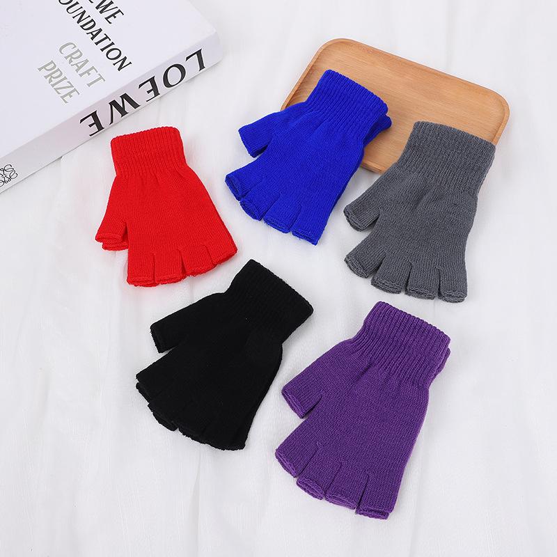 1 пара цветных трикотажных коротких перчаток с полупальцами, зимние теплые аксессуары для велоспорта