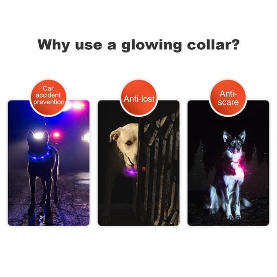 Светодиодный ошейник для собак, перезаряжаемый через USB, водонепроницаемый ошейник для домашних животных с подсветкой для безопасности ночных прогулок