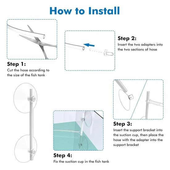 Удобный процесс установки: Легко установите загон, очистив поверхность аквариума, а затем погрузив присоски и шланг в горячую воду для гибкости.. Обрежьте прилагаемую воздушную трубку так, чтобы она соответствовала размеру вашего резервуара, что упрощает установку.