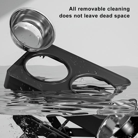 Конструкция из премиальных материалов: Наша миска для домашних животных, изготовленная из прочного АБС-пластика, прочна и устойчива к повреждениям, что обеспечивает длительное использование.. Две миски из нержавеющей стали очень толстые, съемные, их можно легко мыть в посудомоечной машине, что соответствует ежедневному рациону вашего питомца и потребностям в воде.