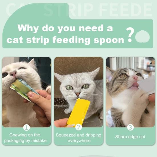Удобный дизайн: Упростите процедуру кормления с помощью интуитивно понятного дизайна ложки Cat Strip Squeeze Scoop.. Вставьте полоску в держатель, снимите пломбу, закрепите зажимом и легко выдавайте продукты, сдвинув зажим.. Наслаждайтесь беспроблемным кормлением, которое улучшает уход за домашними животными.