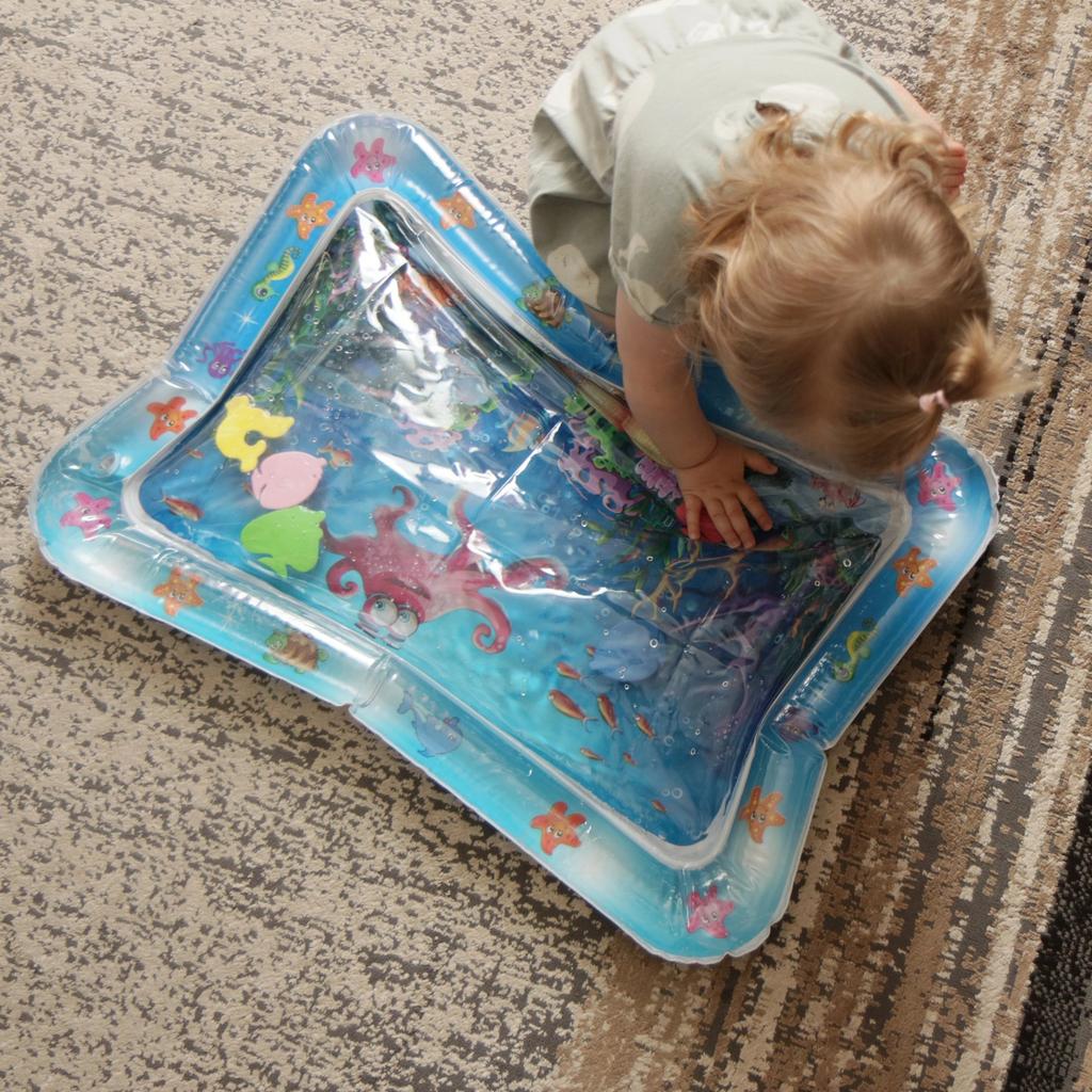 Представляем водный коврик, изготовленный из высококачественного ПВХ-материала, обеспечивающий безопасную и долговечную игру.. Этот инновационный коврик украшен очаровательными рисунками морских животных, которые задействуют чувства вашего ребенка и способствуют развитию мышц его рук и ног.. Просто надуйте, наполните водой и наблюдайте, как ваш малыш наслаждается тактильной и визуальной стимуляцией.. Когда коврик скользит по воде, он улучшает зрительно-моторную координацию и побуждает тянуться к плавающим морским существам..