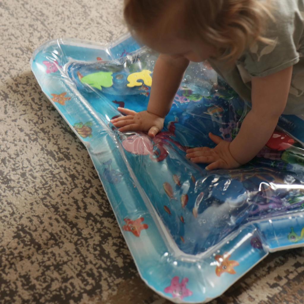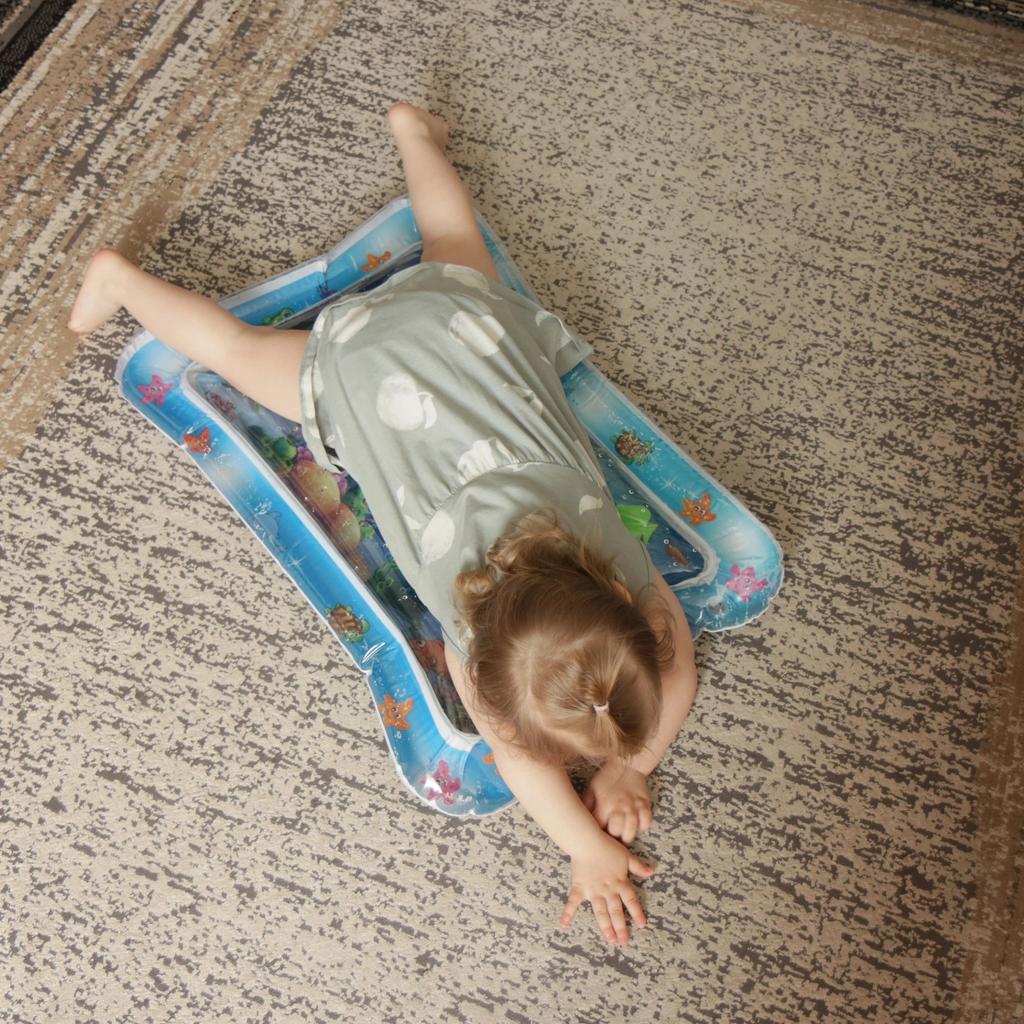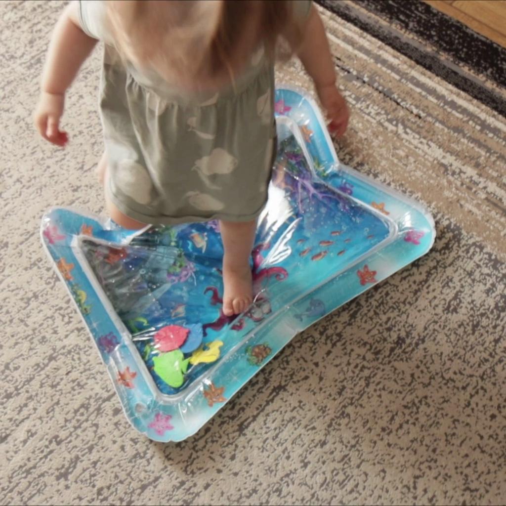 Высококачественный материал ПВХ: Этот коврик для воды, изготовленный из высококачественного ПВХ, обеспечивает долговечность и безопасность вашего ребенка.. Без запаха, безвредный и экологически чистый, он обеспечивает безопасную игровую среду для вашего малыша.