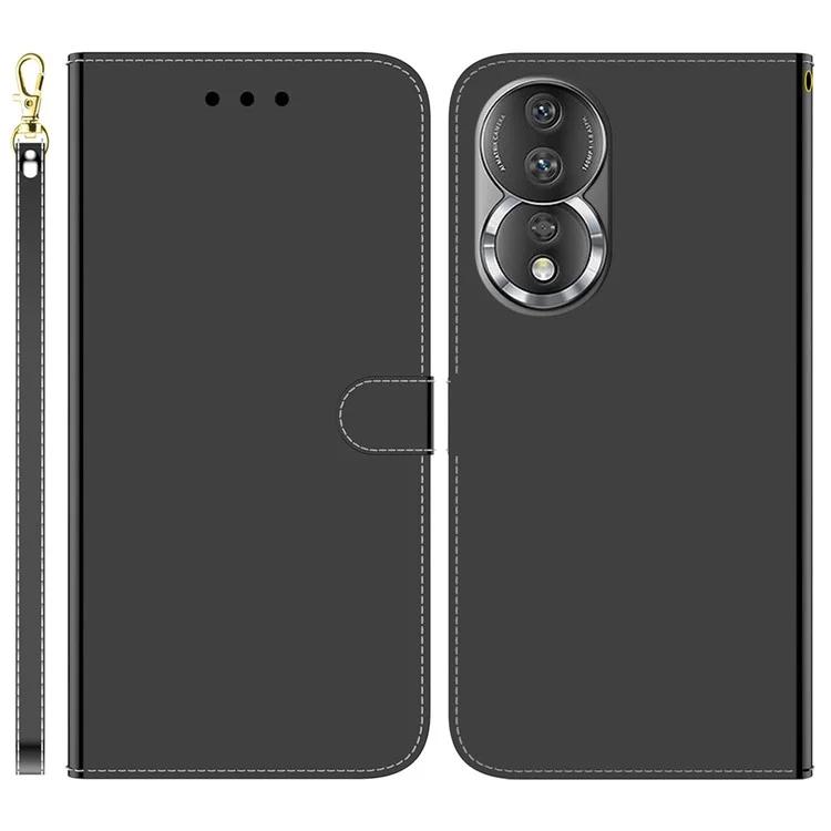 For Honor 80 5G PU Leather Wallet Phone Case Mirror-like Surface Stand Flip Cover with Strap — купить товар онлайн с бесплатной доставкой до всему миру!