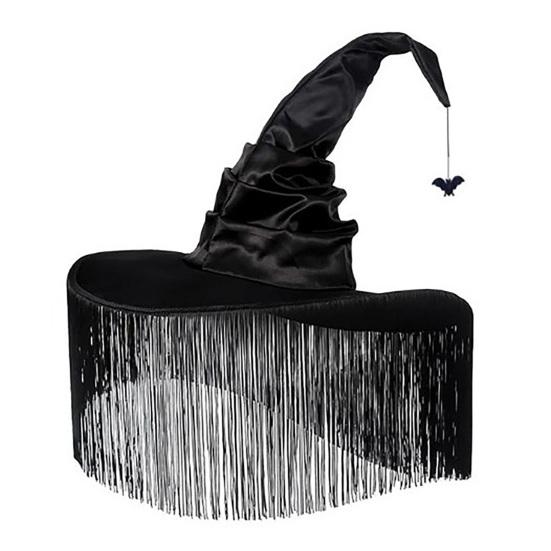 Изысканные детали кромок: Наша шляпа ведьмы на Хэллоуин с замысловатыми украшениями по краям и очаровательным акцентом в виде летучей мыши придаст вашему костюму нотку причудливой элегантности.