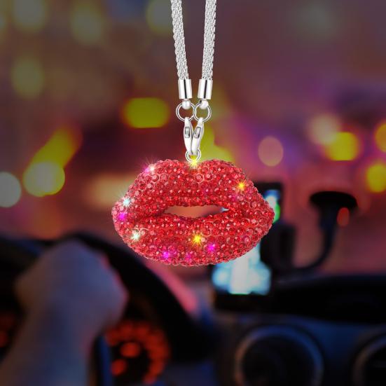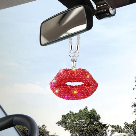 Поднимите стиль вашего автомобиля с помощью ослепительной подвески для зеркала заднего вида в форме поцелуя губы, украшенной стразами, которая придаст вашему автомобилю жизненной силы и очарования.