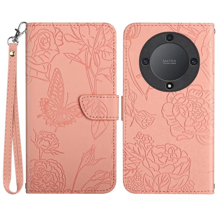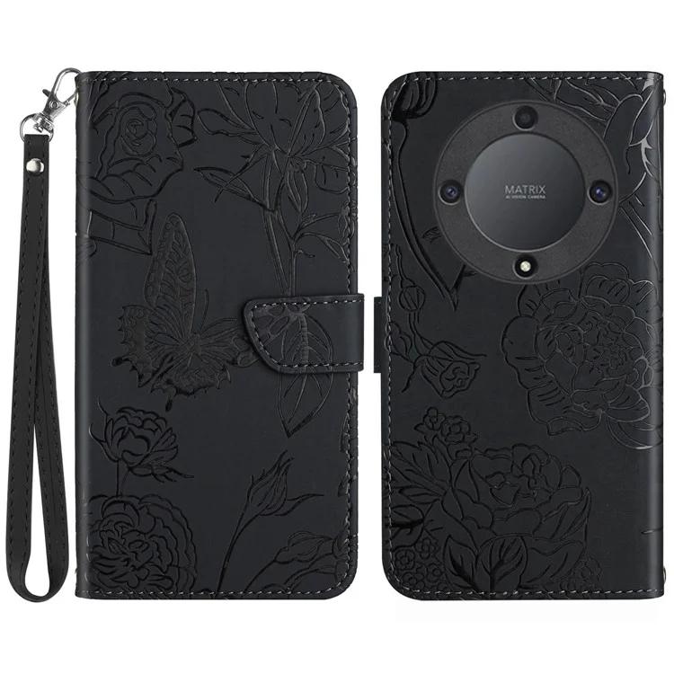 HT03 для Honor Magic5 Lite 5G / X9a 5G чехол-кошелек для телефона из тисненой кожи с подставкой для телефона и удобным ремешком
