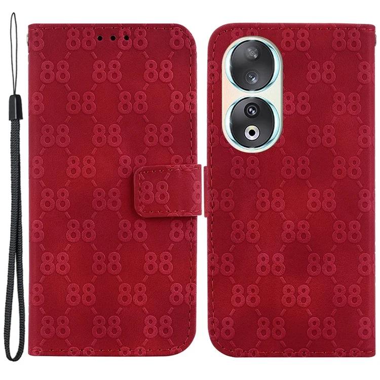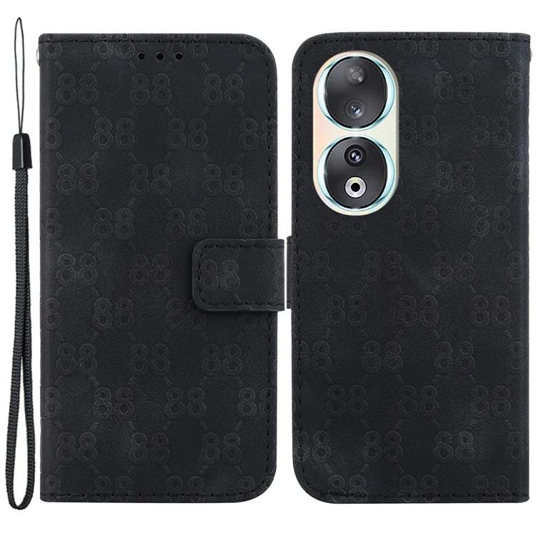 Drop-proof Phone Case for Honor 90 Double 8-Shape Imprint Leather Wallet Stand Phone Cover